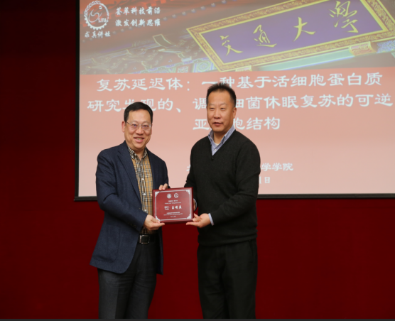 2025-1111月21日上午,北京大学生命科学学院昌增益教授应邀做客海角网 第63期求真讲坛,做题为《复苏延迟体:一种基于活细胞蛋白质研究发现的、调控细菌休眠复苏的可逆亚细胞结构》的主题报告。来自海角网 生命学科相关院系的教师、博士后、研究生50余人参会。讲坛由海角网 特聘教授冯雁主持。