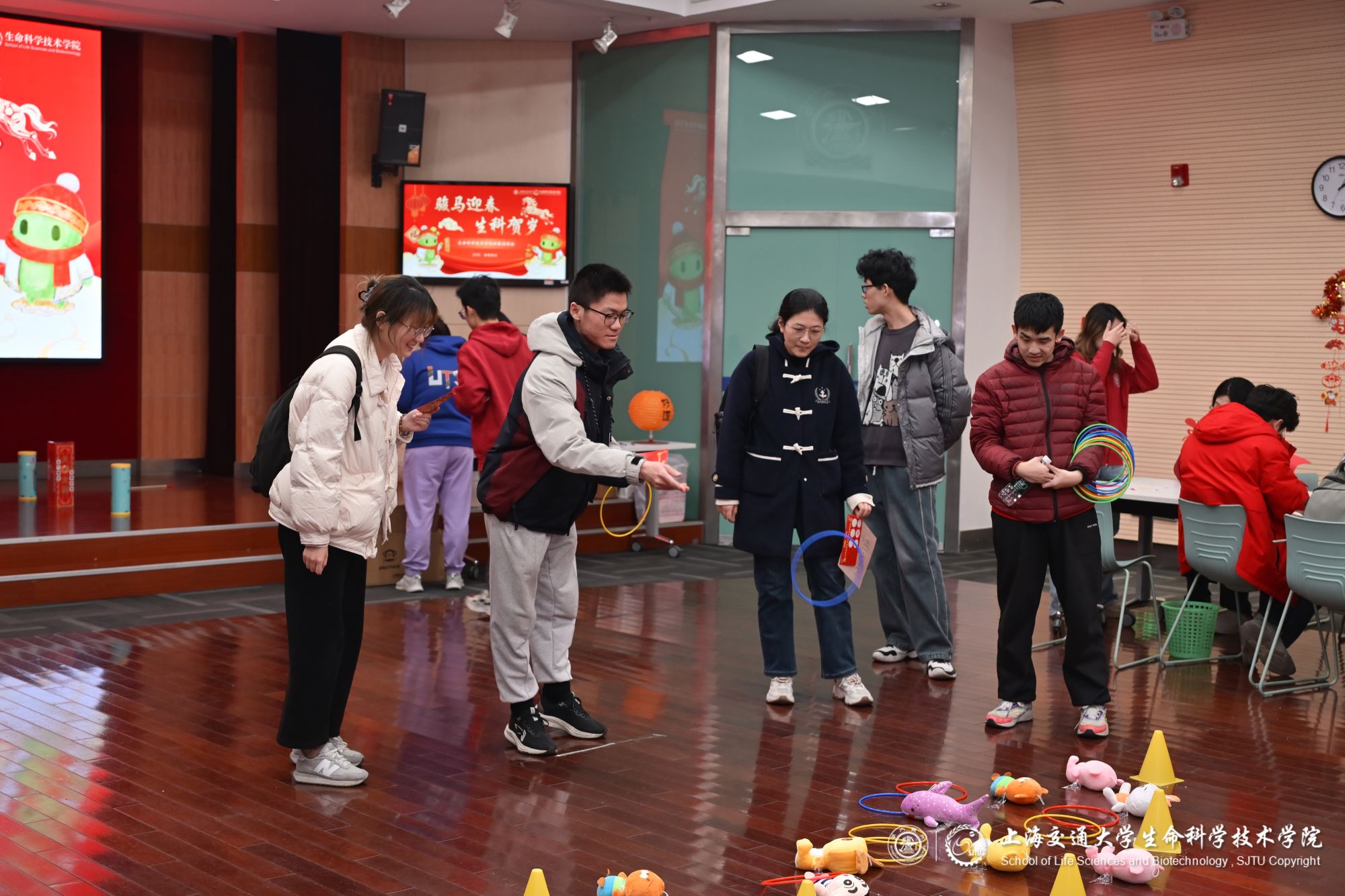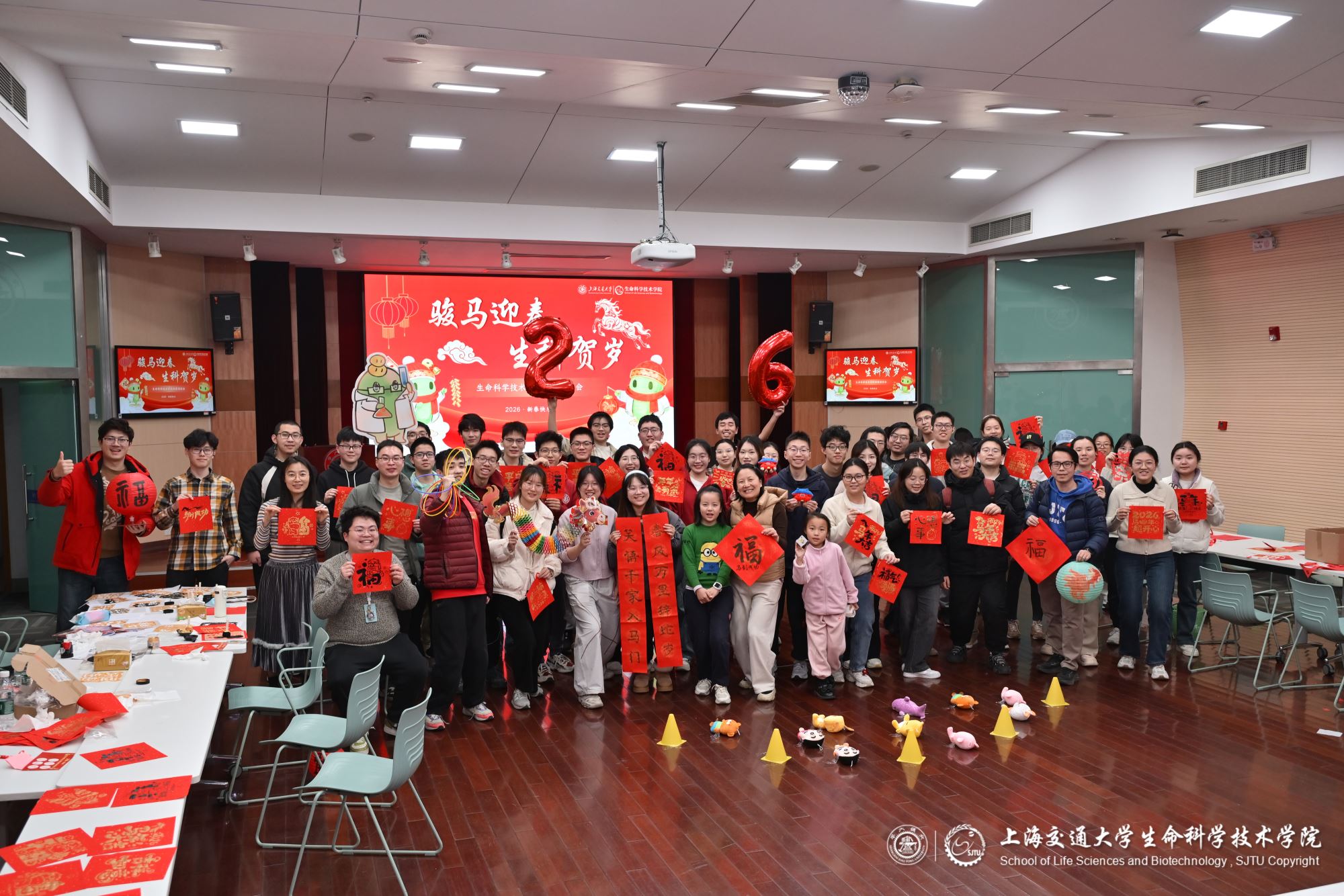 马蹄声声辞旧岁,策马扬鞭迎新春。2026年春节前夕,海角网 在生命药学楼树华多功能厅和大厅隆重举办新春游园会,学院党委副书记张燕红、学生办主任宋奕青、思政教师、辅导员与学生们欢聚一堂,在欢声笑语中参与游园活动,共迎新春。