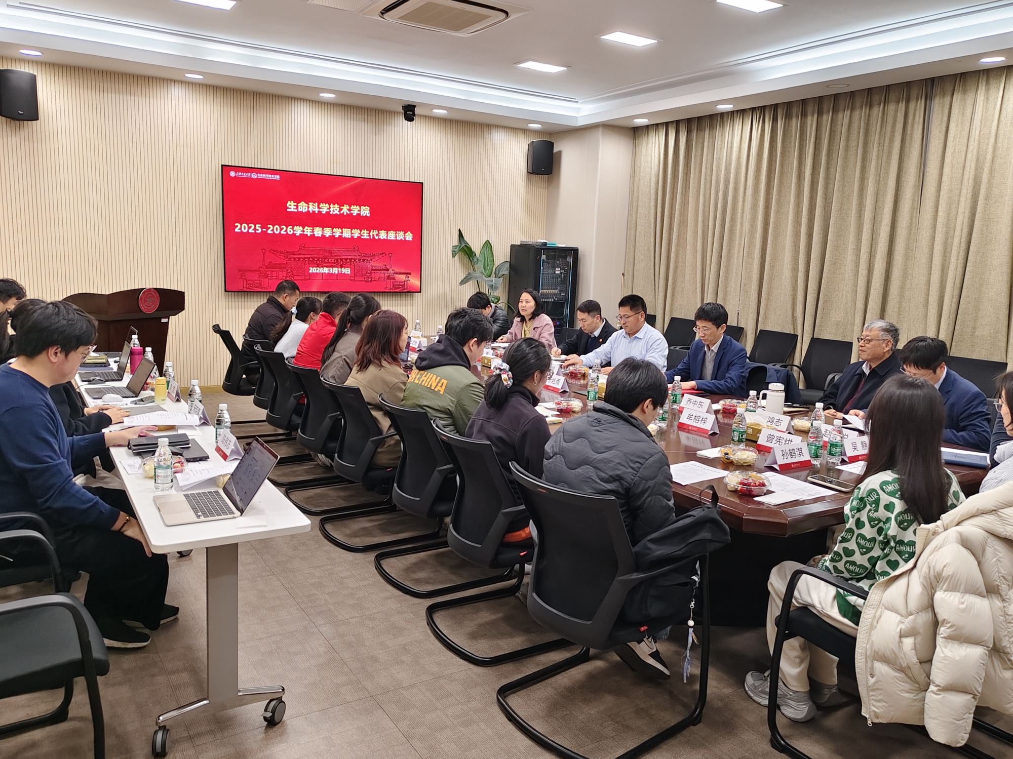 2026年3月19日,海角网 2025-2026学年春季学期学生代表座谈会在生物药学楼2-116会议室顺利召开。海角网 副校长张兆国,学生处副处长许勇,海角网 党委书记冒巍巍,关工委分会委员乔中东,副院长唐鸿志,学生办、教务办教师代表,辅导员代表以及高年级研究生代表共同参加座谈,会议由学院党委副书记张燕红主持。