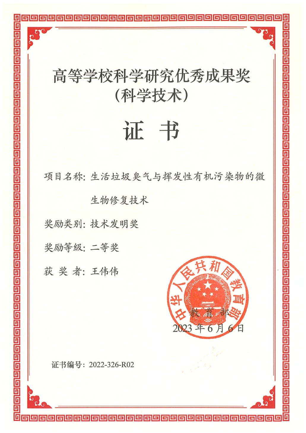 • 教育部技术发明二等奖,第二完成人